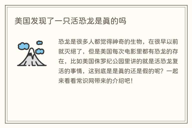 恐龙是很多人都觉得神奇的生物,在很早以前就灭绝了,但是美国每次电影里都有恐龙的存在,比如美国侏罗纪公园里讲的就是活恐龙复活的事情,这到底是是真的还是假的呢?一起来看看常识网带来的介绍吧!