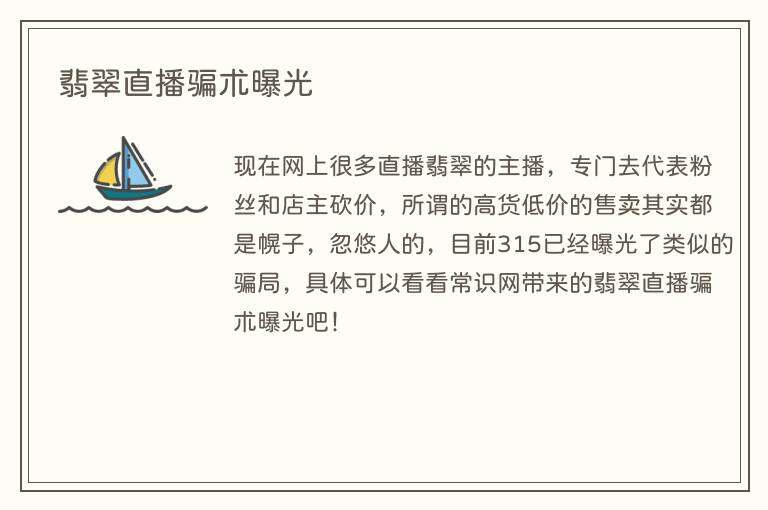 现在网上很多直播翡翠的主播,专门去代表粉丝和店主砍价,所谓的高货低价的售卖其实都是幌子,忽悠人的,目前315已经曝光了类似的骗局,具体可以看看常识网带来的翡翠直播骗术曝光吧!