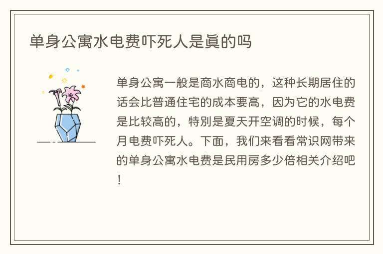 单身公寓水电费吓死人是真的吗
