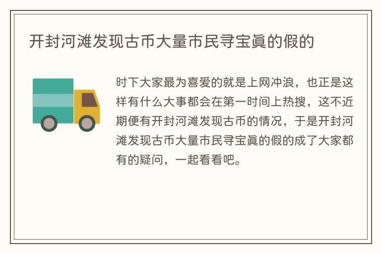 时下大家最为喜爱的就是上网冲浪,也正是这样有什么大事都会在第一时间上热搜,这不近期便有开封河滩发现古币的情况,于是开封河滩发现古币大量市民寻宝真的假的成了大家都有的疑问,一起看看吧。