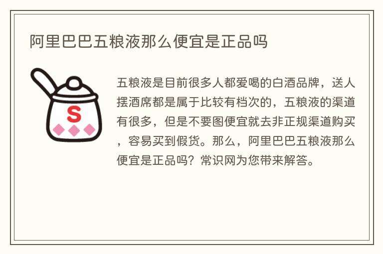 五粮液是目前很多人都爱喝的白酒品牌,送人摆酒席都是属于比较有档次的,五粮液的渠道有很多,但是不要图便宜就去非正规渠道购买,容易买到假货。那么,阿里巴巴五粮液那么便宜是正品吗?常识网为您带来解答。