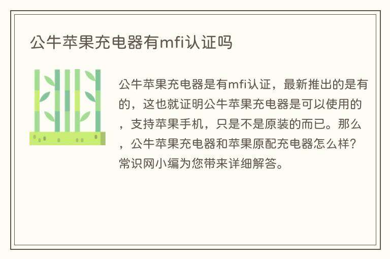 公牛充电器可以有MFi认证,但并不是所有型号的公牛充电器都有MFi认证。MFi认证是苹果公司的认证标准,意味着该充电器已通过苹果的认证测试,可以与苹果设备完全兼容,并且符合苹果公司的技术规范和安全要求。拥有MFi认证的充电器通常会带有MFi认证标识或者在产品说明书上会注明具有MFi认证。如果您需要一款与苹果设备完全兼容的充电器,建议您选择具有MFi认证的公牛充电器或者苹果官方推荐的充电器。