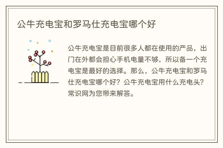 公牛充电宝是目前很多人都在使用的产品,出门在外都会担心手机电量不够,所以备一个充电宝是最好的选择。那么,公牛充电宝和罗马仕充电宝哪个好?公牛充电宝用什么充电头?常识网为您带来解答。