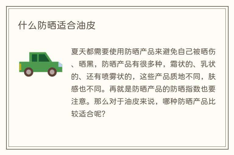 夏天都需要使用防晒产品来避免自己被晒伤、晒黑,防晒产品有很多种,霜状的、乳状的、还有喷雾状的,这些产品质地不同,肤感也不同。再就是防晒产品的防晒指数也要注意。那么对于油皮来说,哪种防晒产品比较适合呢?
