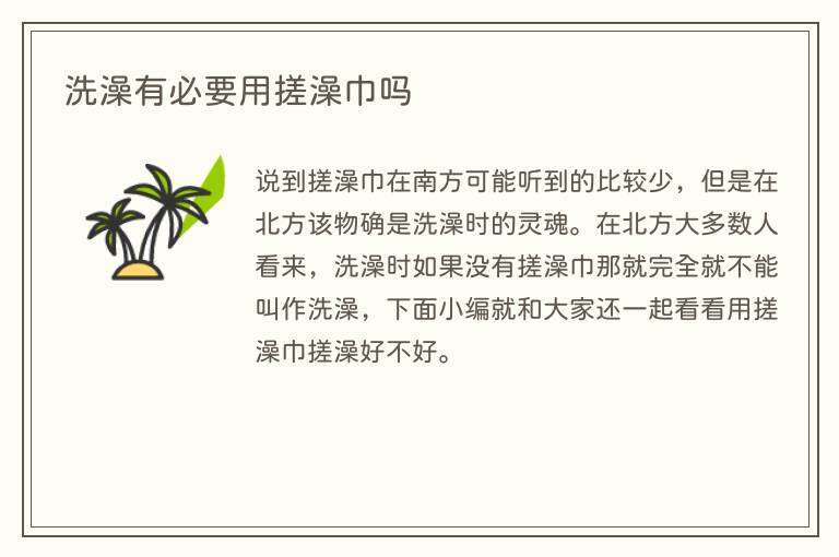 说到搓澡巾在南方可能听到的比较少,但是在北方该物确是洗澡时的灵魂。在北方大多数人看来,洗澡时如果没有搓澡巾那就完全就不能叫作洗澡,下面小编就和大家还一起看看用搓澡巾搓澡好不好。