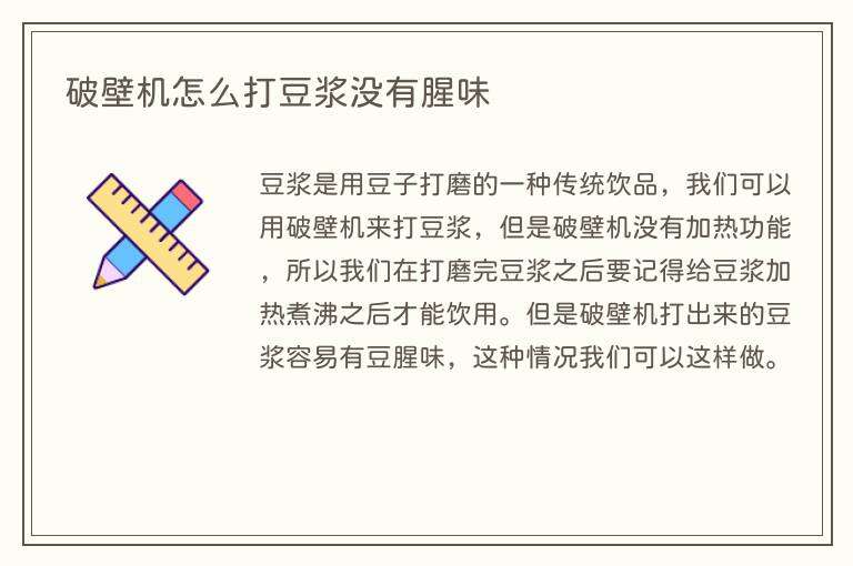 破壁机怎么打豆浆没有腥味