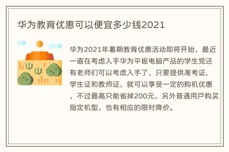 不一定会有优惠。综合2020年和2021年的华为教育优惠活动来看,主要优惠产品还是集中在笔记本电脑和平板电脑,以及耳机、手表等配件上。2020年的活动中,购机还可以换购FreeLace耳机、FreeBuds 3,赠送50G云空间存储免费使用。但在2021年活动中,只有价格优惠,没有额外赠送和换购内容。当然,具体还是要看华为当年公布的活动规则。