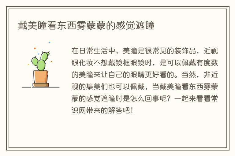 在日常生活中,美瞳是很常见的装饰品,近视眼化妆不想戴镜框眼镜时,是可以佩戴有度数的美瞳来让自己的眼睛更好看的。当然,非近视的集美们也可以佩戴,当戴美瞳看东西雾蒙蒙的感觉遮瞳时是怎么回事呢?一起来看看常识网带来的解答吧!
