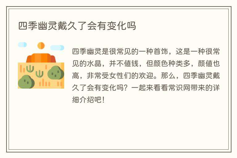 四季幽灵是很常见的一种首饰,这是一种很常见的水晶,并不值钱,但颜色种类多,颜值也高,非常受女性们的欢迎。那么,四季幽灵戴久了会有变化吗?一起来看看常识网带来的详细介绍吧!
