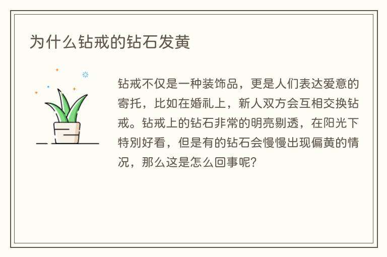 钻戒不仅是一种装饰品,更是人们表达爱意的寄托,比如在婚礼上,新人双方会互相交换钻戒。钻戒上的钻石非常的明亮剔透,在阳光下特别好看,但是有的钻石会慢慢出现偏黄的情况,那么这是怎么回事呢?