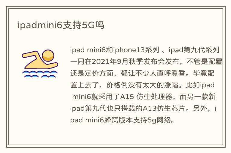 ipadmini6支持5G吗