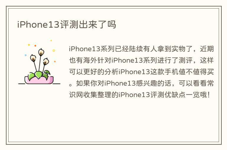 iPhone13系列已经陆续有人拿到实物了,近期也有海外针对iPhone13系列进行了测评,这样可以更好的分析iPhone13这款手机值不值得买。如果你对iPhone13感兴趣的话,可以看看常识网收集整理的iPhone13评测优缺点一览哦!