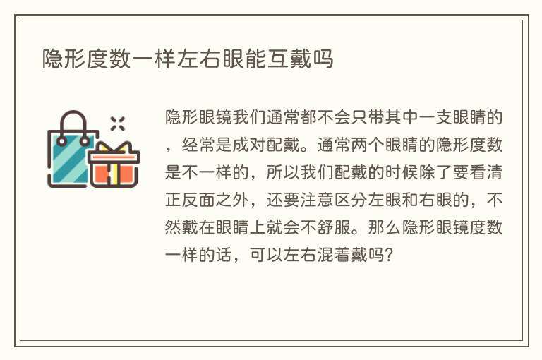 隐形度数一样左右眼能互戴吗