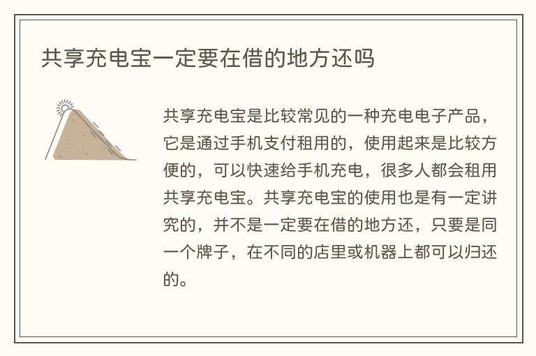 不是,只要是同一个品牌的充电宝,也可以在其他地方归还的。