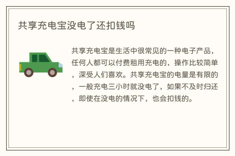 共享充电宝是生活中很常见的一种电子产品,任何人都可以付费租用充电的,操作比较简单,深受人们喜欢。共享充电宝的电量是有限的,一般充电三小时就没电了,如果不及时归还,即使在没电的情况下,也会扣钱的。