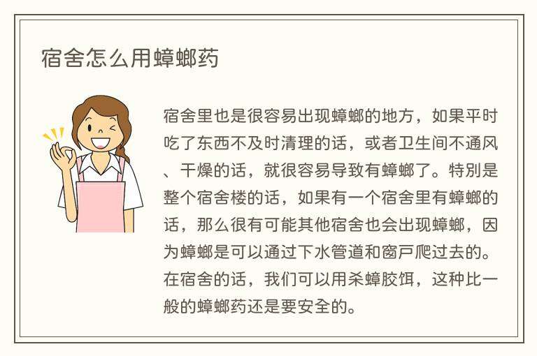 宿舍里比较推荐使用蟑螂胶饵,这种毒性低,比其他蟑螂药更安全。