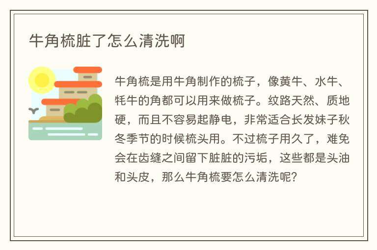 牛角梳是用牛角制作的梳子,像黄牛、水牛、牦牛的角都可以用来做梳子。纹路天然、质地硬,而且不容易起静电,非常适合长发妹子秋冬季节的时候梳头用。不过梳子用久了,难免会在齿缝之间留下脏脏的污垢,这些都是头油和头皮,那么牛角梳要怎么清洗呢?