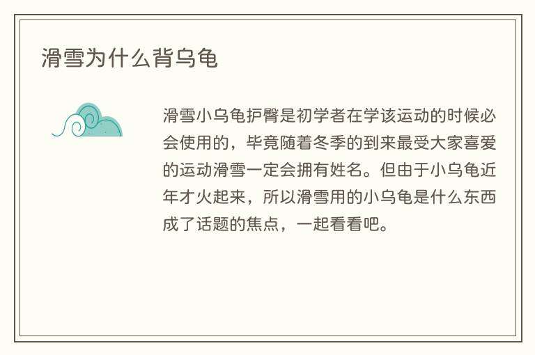 滑雪小乌龟护臀是初学者在学该运动的时候必会使用的,毕竟随着冬季的到来最受大家喜爱的运动滑雪一定会拥有姓名。但由于小乌龟近年才火起来,所以滑雪用的小乌龟是什么东西成了话题的焦点,一起看看吧。