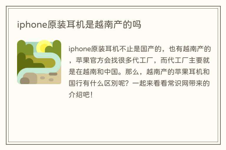 iphone原装耳机不止是国产的,也有越南产的,苹果官方会找很多代工厂,而代工厂主要就是在越南和中国。那么,越南产的苹果耳机和国行有什么区别呢?一起来看看常识网带来的介绍吧!
