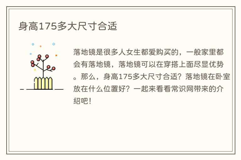 落地镜是很多人女生都爱购买的,一般家里都会有落地镜,落地镜可以在穿搭上面尽显优势。那么,身高175多大尺寸合适?落地镜在卧室放在什么位置好?一起来看看常识网带来的介绍吧!