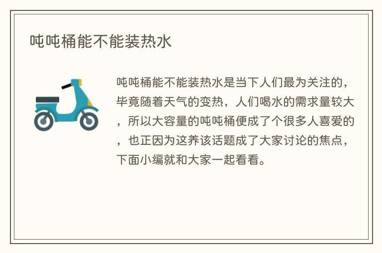吨吨桶能不能装热水是当下人们最为关注的,毕竟随着天气的变热,人们喝水的需求量较大,所以大容量的吨吨桶便成了个很多人喜爱的,也正因为这养该话题成了大家讨论的焦点,下面小编就和大家一起看看。