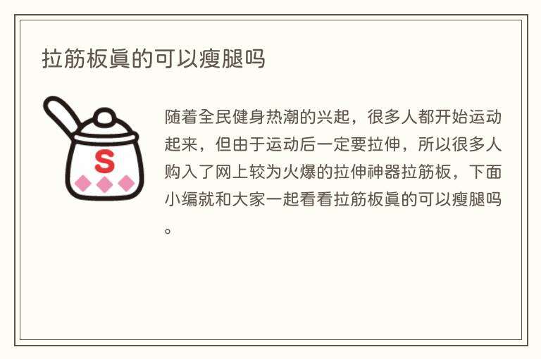 随着全民健身热潮的兴起,很多人都开始运动起来,但由于运动后一定要拉伸,所以很多人购入了网上较为火爆的拉伸神器拉筋板,下面小编就和大家一起看看拉筋板真的可以瘦腿吗。