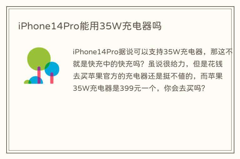 iPhone14Pro据说可以支持35W充电器,那这不就是快充中的快充吗?虽说很给力,但是花钱去买苹果官方的充电器还是挺不值的,而苹果35W充电器是399元一个,你会去买吗?