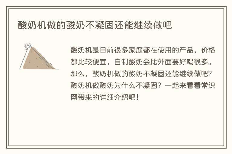 酸奶机做的酸奶不凝固还能继续做吧