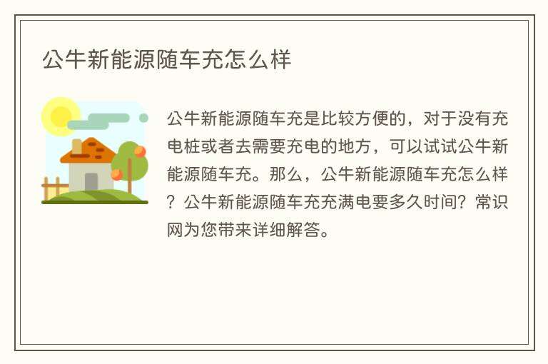 公牛新能源随车充是比较方便的,对于没有充电桩或者去需要充电的地方,可以试试公牛新能源随车充。那么,公牛新能源随车充怎么样?公牛新能源随车充充满电要多久时间?常识网为您带来详细解答。