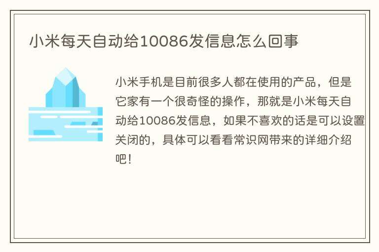 小米手机是目前很多人都在使用的产品,但是它家有一个很奇怪的操作,那就是小米每天自动给10086发信息,如果不喜欢的话是可以设置关闭的,具体可以看看常识网带来的详细介绍吧!