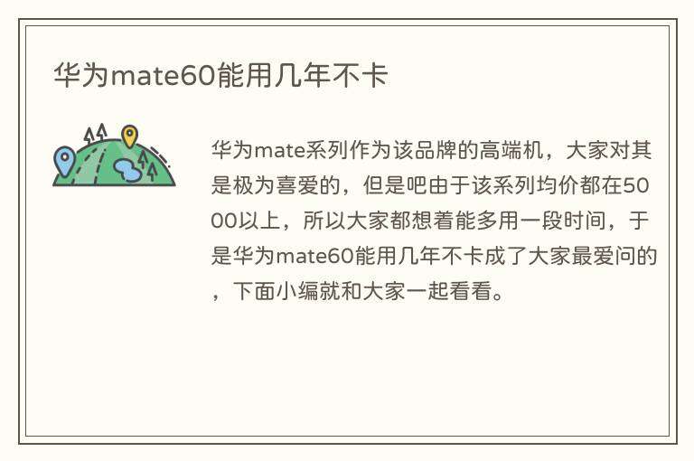 华为mate系列作为该品牌的高端机,大家对其是极为喜爱的,但是吧由于该系列均价都在5000以上,所以大家都想着能多用一段时间,于是华为mate60能用几年不卡成了大家最爱问的,下面小编就和大家一起看看。