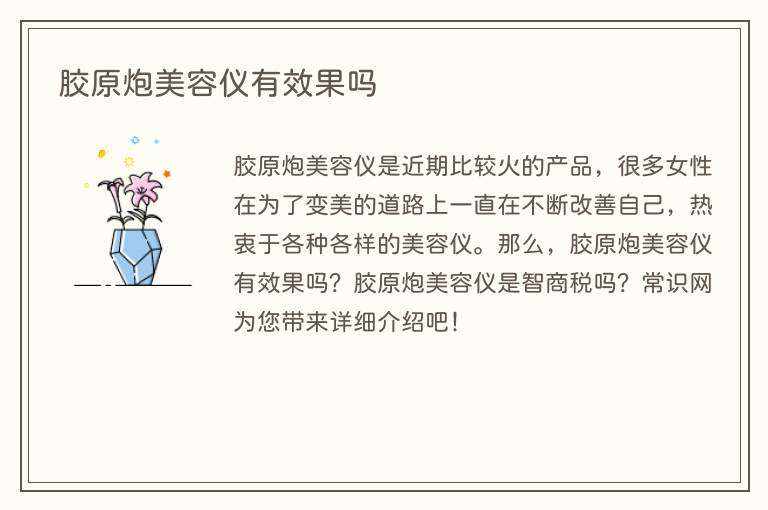 根据不同品牌和型号的胶原炮美容仪,效果可能有所不同,而且使用方法、频率、时间等也可能影响效果。一般来说,如果正确使用,胶原炮美容仪可以对皮肤产生一定的改善,但是需要注意的是,其效果也会因个体差异而有所不同。此外,需要注意的是,美容仪器的使用也有一定的风险,建议在使用前咨询专业人士的意见,并遵循正确的使用方法。