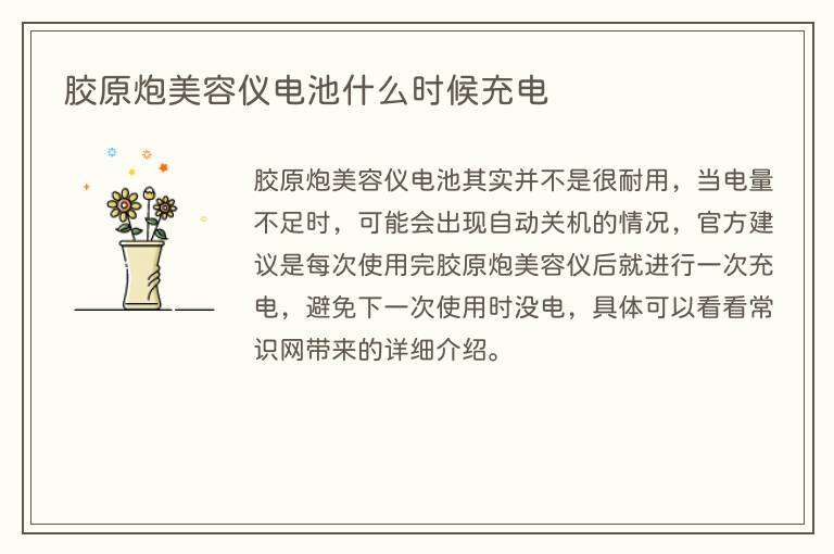 胶原炮美容仪电池其实并不是很耐用,当电量不足时,可能会出现自动关机的情况,官方建议是每次使用完胶原炮美容仪后就进行一次充电,避免下一次使用时没电,具体可以看看常识网带来的详细介绍。