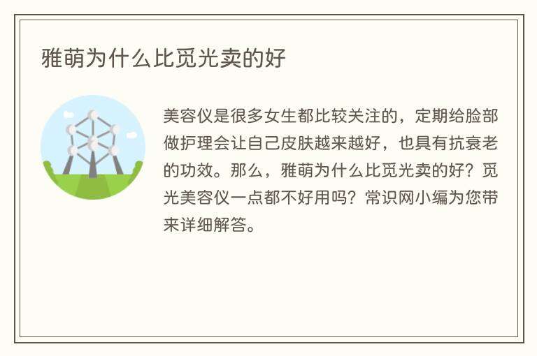 美容仪是很多女生都比较关注的,定期给脸部做护理会让自己皮肤越来越好,也具有抗衰老的功效。那么,雅萌为什么比觅光卖的好?觅光美容仪一点都不好用吗?常识网小编为您带来详细解答。