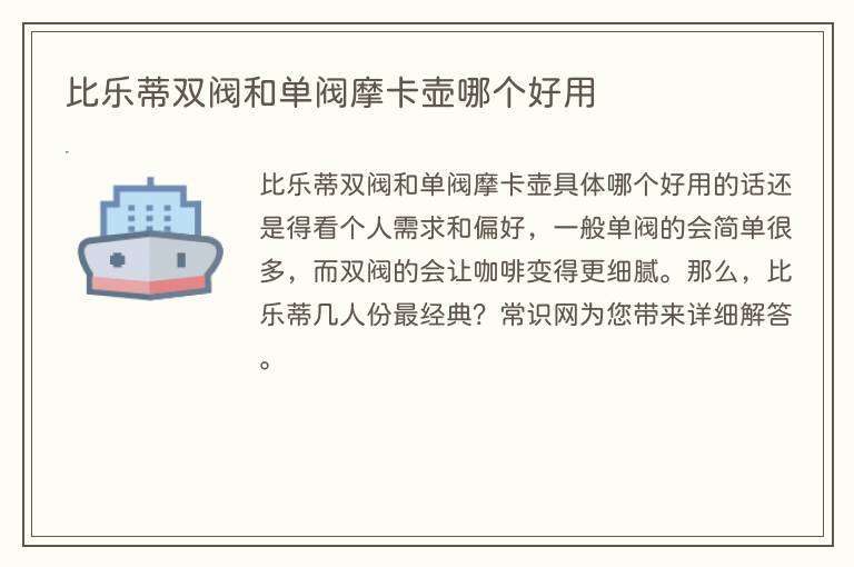 比乐蒂双阀和单阀摩卡壶具体哪个好用的话还是得看个人需求和偏好,一般单阀的会简单很多,而双阀的会让咖啡变得更细腻。那么,比乐蒂几人份最经典?常识网为您带来详细解答。