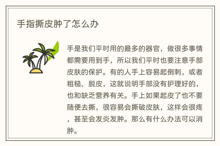手指撕皮肿了怎么办