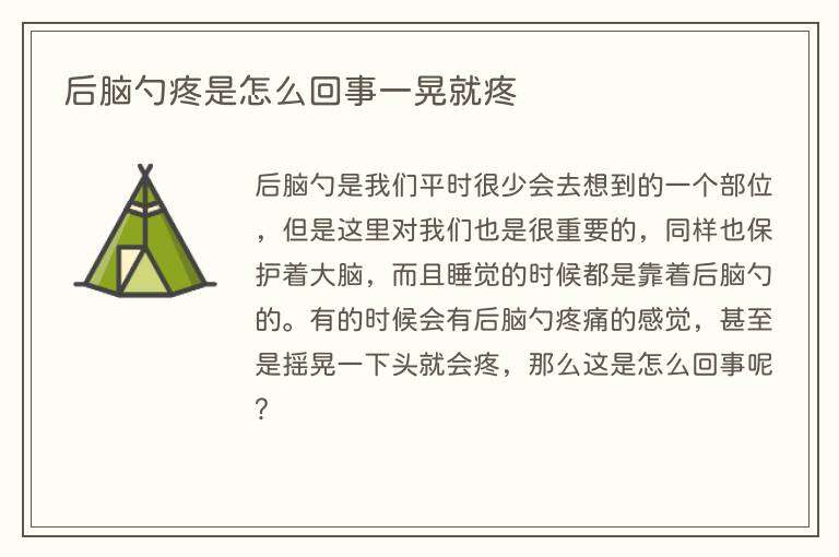 头痛的原因有很多,如果只是后脑勺一晃就疼并没有其他不适,多半是睡眠不足、或者压力过大导致的。也有可能是颈椎病引起的压迫血管而导致供血不好,所以一定要做休息,少熬夜,少低头玩手机。需要保持良好的生活习惯,要进行颈部,肌肉放松训练,进行适当的对症处理和松弛肌肉治疗就可以。如果说想要明确的话,建议您到医院做一个颅脑和颈椎的ct看一下。