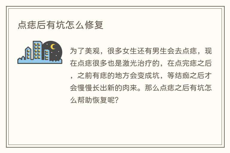 为了美观,很多女生还有男生会去点痣,现在点痣很多也是激光治疗的,在点完痣之后,之前有痣的地方会变成坑,等结痂之后才会慢慢长出新的肉来。那么点痣之后有坑怎么帮助恢复呢?