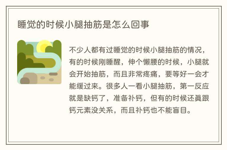 不少人都有过睡觉的时候小腿抽筋的情况,有的时候刚睡醒,伸个懒腰的时候,小腿就会开始抽筋,而且非常疼痛,要等好一会才能缓过来。很多人一看小腿抽筋,第一反应就是缺钙了,准备补钙,但有的时候还真跟钙元素没关系,而且补钙也不能盲目。
