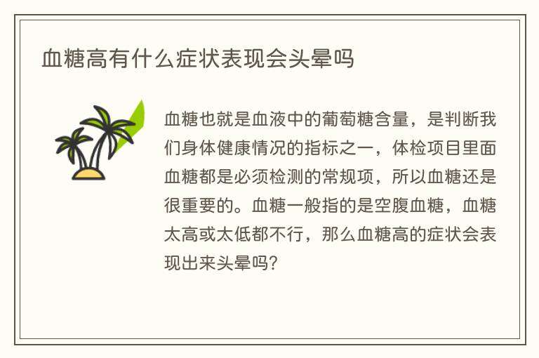 血糖高有什么症状表现会头晕吗