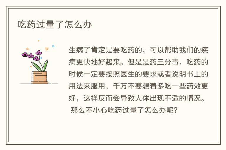 生病了肯定是要吃药的,可以帮助我们的疾病更快地好起来。但是是药三分毒,吃药的时候一定要按照医生的要求或者说明书上的用法来服用,千万不要想着多吃一些药效更好,这样反而会导致人体出现不适的情况。 那么不小心吃药过量了怎么办呢?