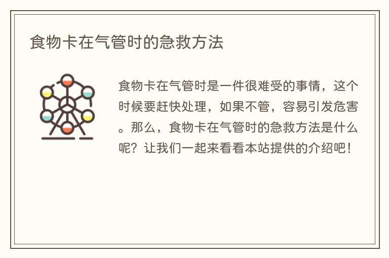 食物卡在气管时是一件很难受的事情,这个时候要赶快处理,如果不管,容易引发危害。那么,食物卡在气管时的急救方法是什么呢?让我们一起来看看本站提供的介绍吧!