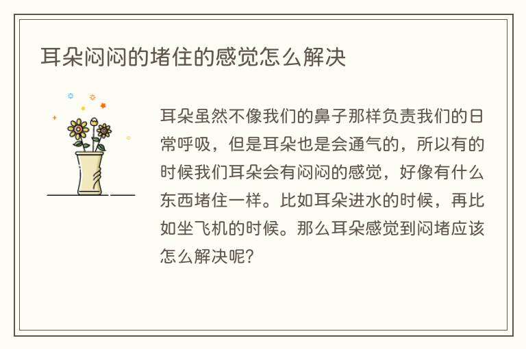 耳朵虽然不像我们的鼻子那样负责我们的日常呼吸,但是耳朵也是会通气的,所以有的时候我们耳朵会有闷闷的感觉,好像有什么东西堵住一样。比如耳朵进水的时候,再比如坐飞机的时候。那么耳朵感觉到闷堵应该怎么解决呢?