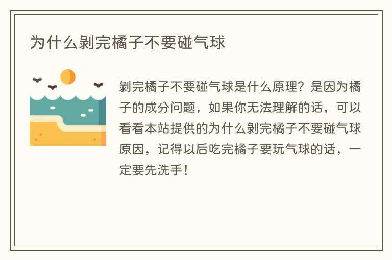 剥完橘子不要碰气球是什么原理?是因为橘子的成分问题,如果你无法理解的话,可以看看本站提供的为什么剥完橘子不要碰气球原因,记得以后吃完橘子要玩气球的话,一定要先洗手!
