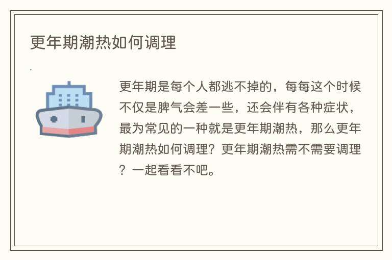更年期是每个人都逃不掉的,每每这个时候不仅是脾气会差一些,还会伴有各种症状,最为常见的一种就是更年期潮热,那么更年期潮热如何调理?更年期潮热需不需要调理?一起看看不吧。