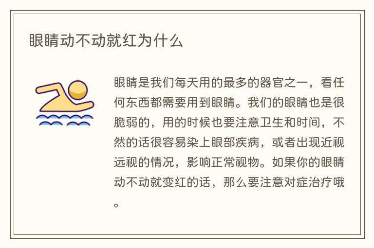 眼睛是我们每天用的最多的器官之一,看任何东西都需要用到眼睛。我们的眼睛也是很脆弱的,用的时候也要注意卫生和时间,不然的话很容易染上眼部疾病,或者出现近视远视的情况,影响正常视物。如果你的眼睛动不动就变红的话,那么要注意对症治疗哦。