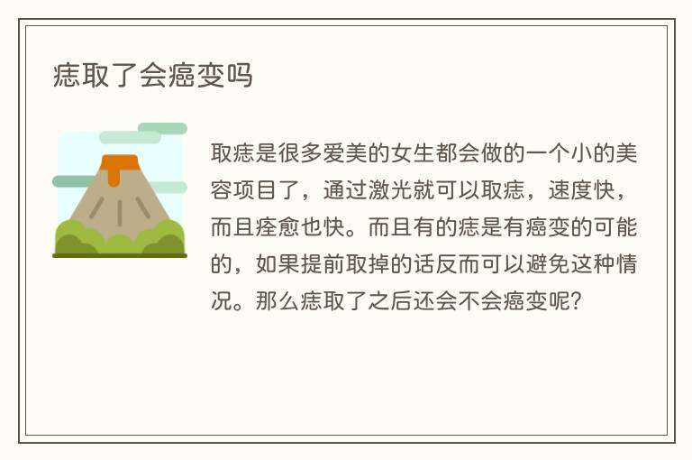 取痣是很多爱美的女生都会做的一个小的美容项目了,通过激光就可以取痣,速度快,而且痊愈也快。而且有的痣是有癌变的可能的,如果提前取掉的话反而可以避免这种情况。那么痣取了之后还会不会癌变呢?
