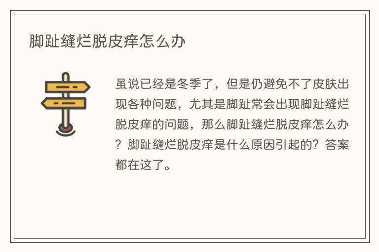 虽说已经是冬季了,但是仍避免不了皮肤出现各种问题,尤其是脚趾常会出现脚趾缝烂脱皮痒的问题,那么脚趾缝烂脱皮痒怎么办?脚趾缝烂脱皮痒是什么原因引起的?答案都在这了。