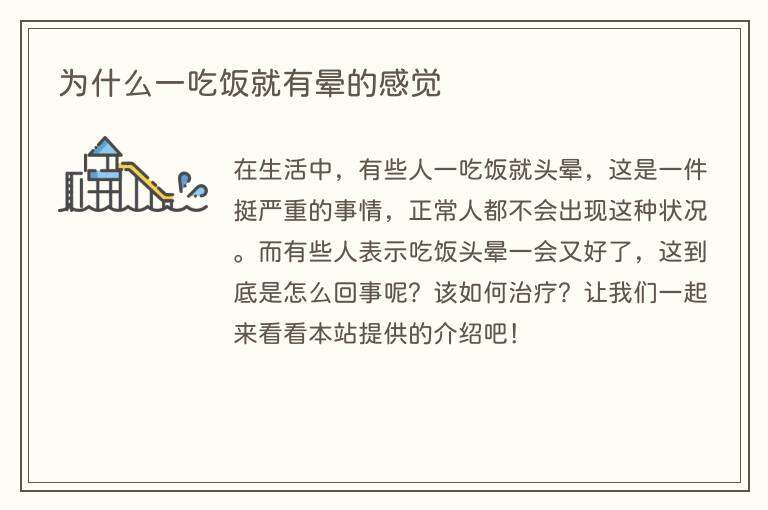 在生活中,有些人一吃饭就头晕,这是一件挺严重的事情,正常人都不会出现这种状况。而有些人表示吃饭头晕一会又好了,这到底是怎么回事呢?该如何治疗?让我们一起来看看本站提供的介绍吧!