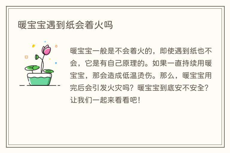暖宝宝一般是不会着火的,即使遇到纸也不会,它是有自己原理的。如果一直持续用暖宝宝,那会造成低温烫伤。那么,暖宝宝用完后会引发火灾吗?暖宝宝到底安不安全?让我们一起来看看吧!